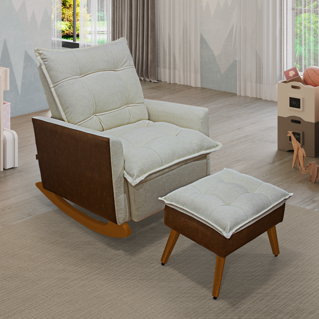 A Poltrona Aylla está disponível em dois tamanhos – P (ideal para quartos menores) e G (perfeita para espaços amplos). Com assento e encosto em fibra siliconada, base com balanço suave e sistema reclinável, é a escolha ideal para quem busca um refúgio completo de descanso.