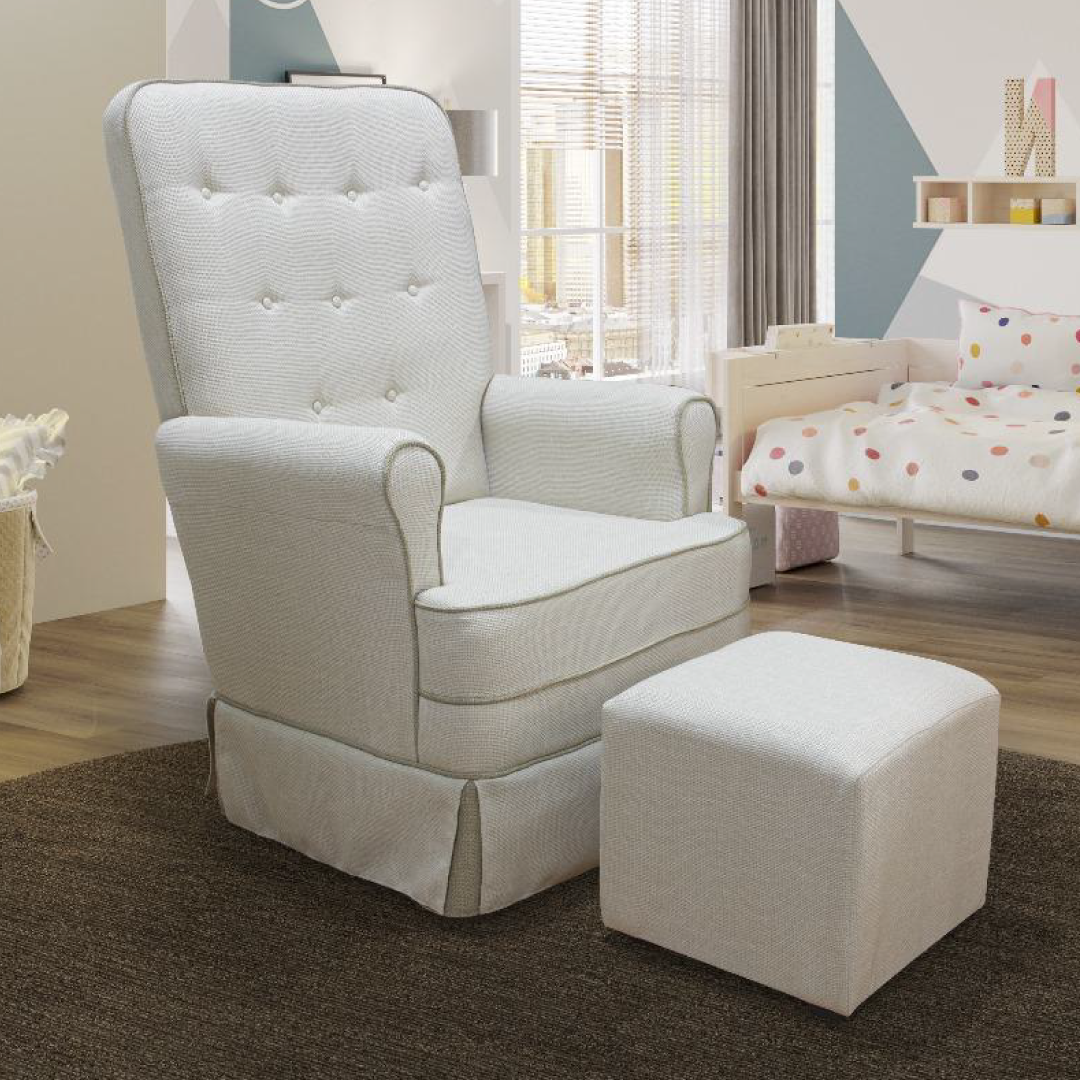 A Poltrona Maria Clara é ideal para quem busca firmeza e estabilidade na hora da amamentação. Com encosto em espuma D23, proporciona sustentação ideal para as costas, além da base com balanço que ajuda a relaxar mãe e bebê. Acompanha um puff simples para elevar os pés e aliviar a pressão nas pernas.